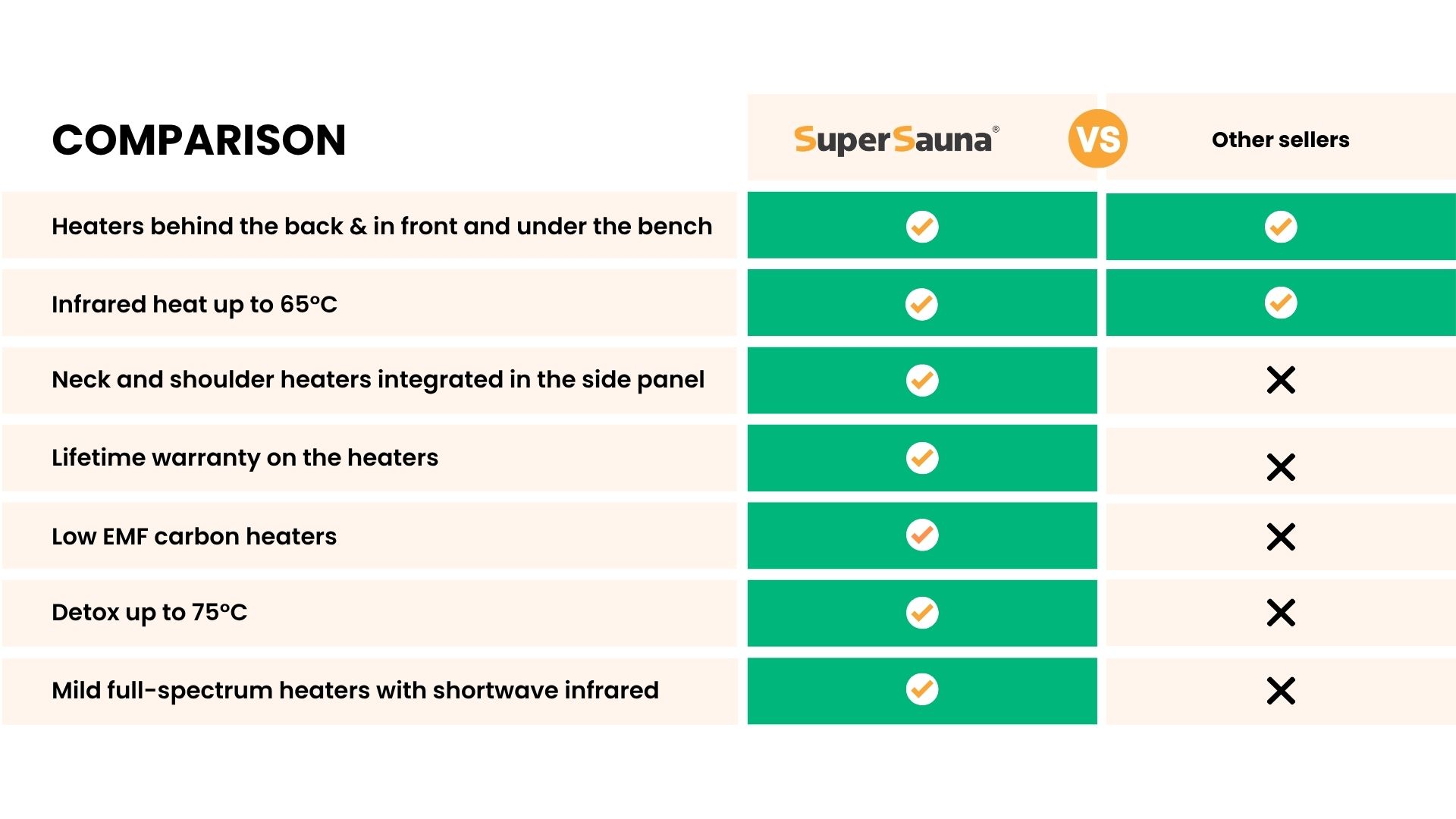 - Heater: 4 Infraheat™ Intense heaters + 1 Full Spectrum