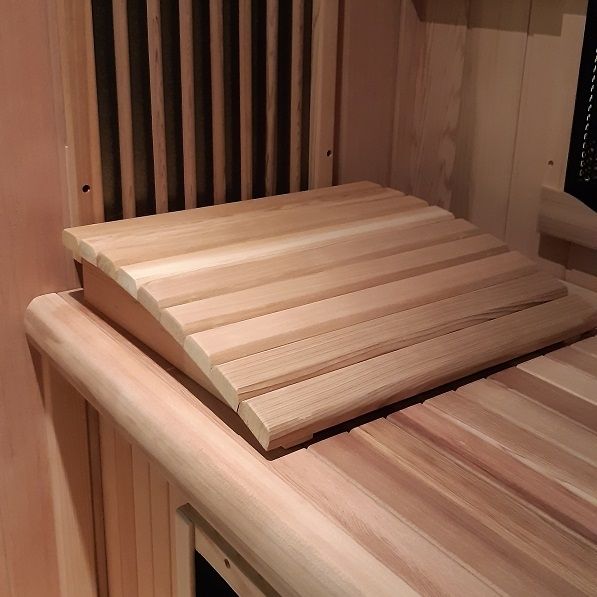 - Headrest sauna made of White Cedar, ensures relaxing lying down