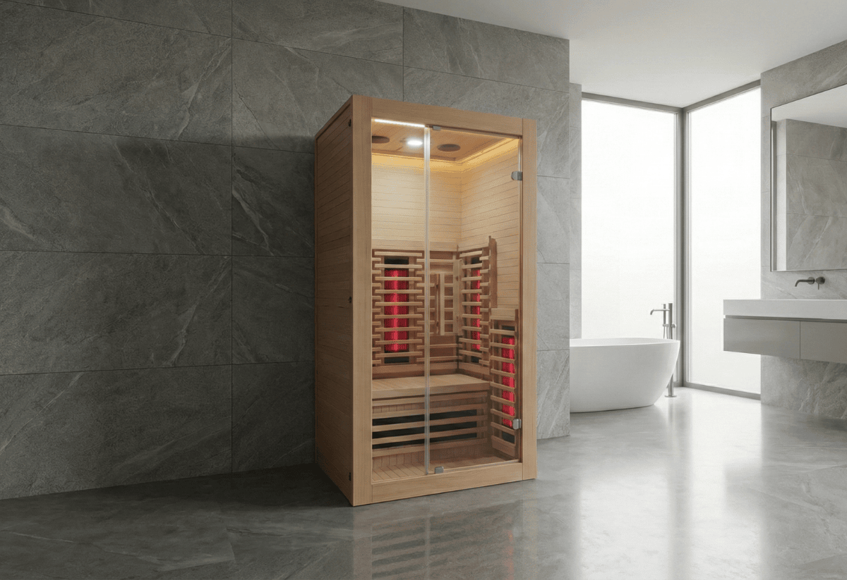 Infrared Sauna with 100 MediHeat – Dual Heater and IR A B C
