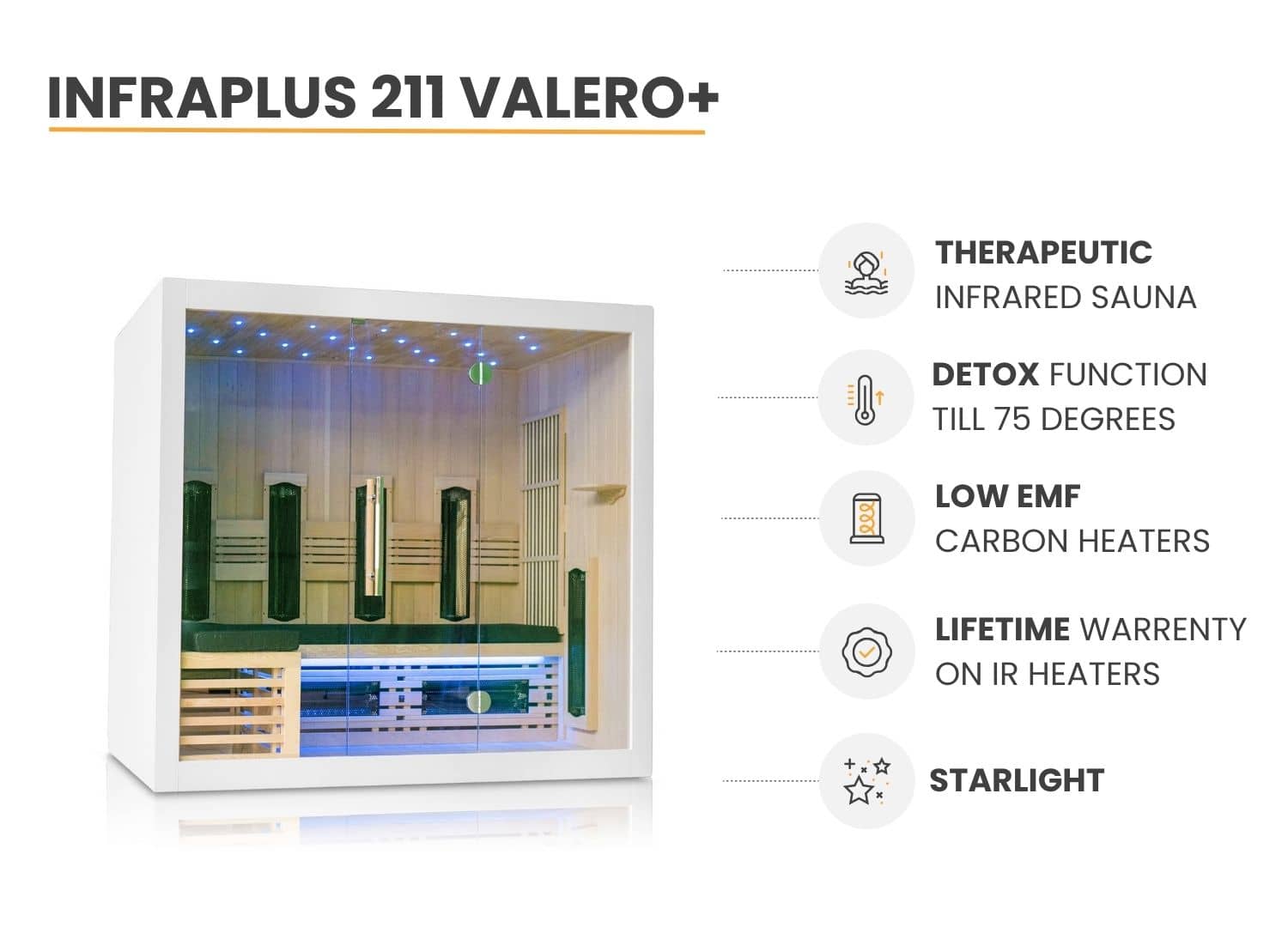 | Sauna type | Therapeutic infrared sauna |